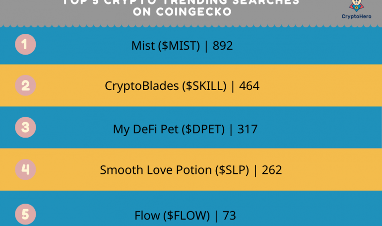 Let's check out top 5 crypto trending searches on Coingecko. Repost if you like!