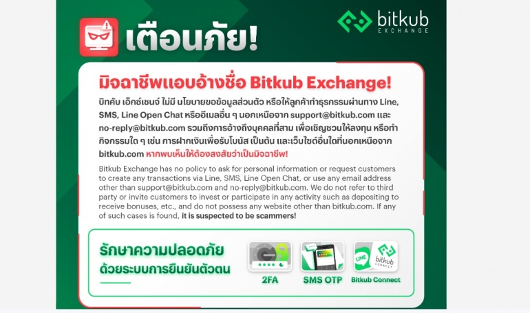 Bitkub Exchange, Thailand’s leading cryptocurrency exchange platform, issued an alert email to its members warning them about the impersonation as Bitkub Exchange.